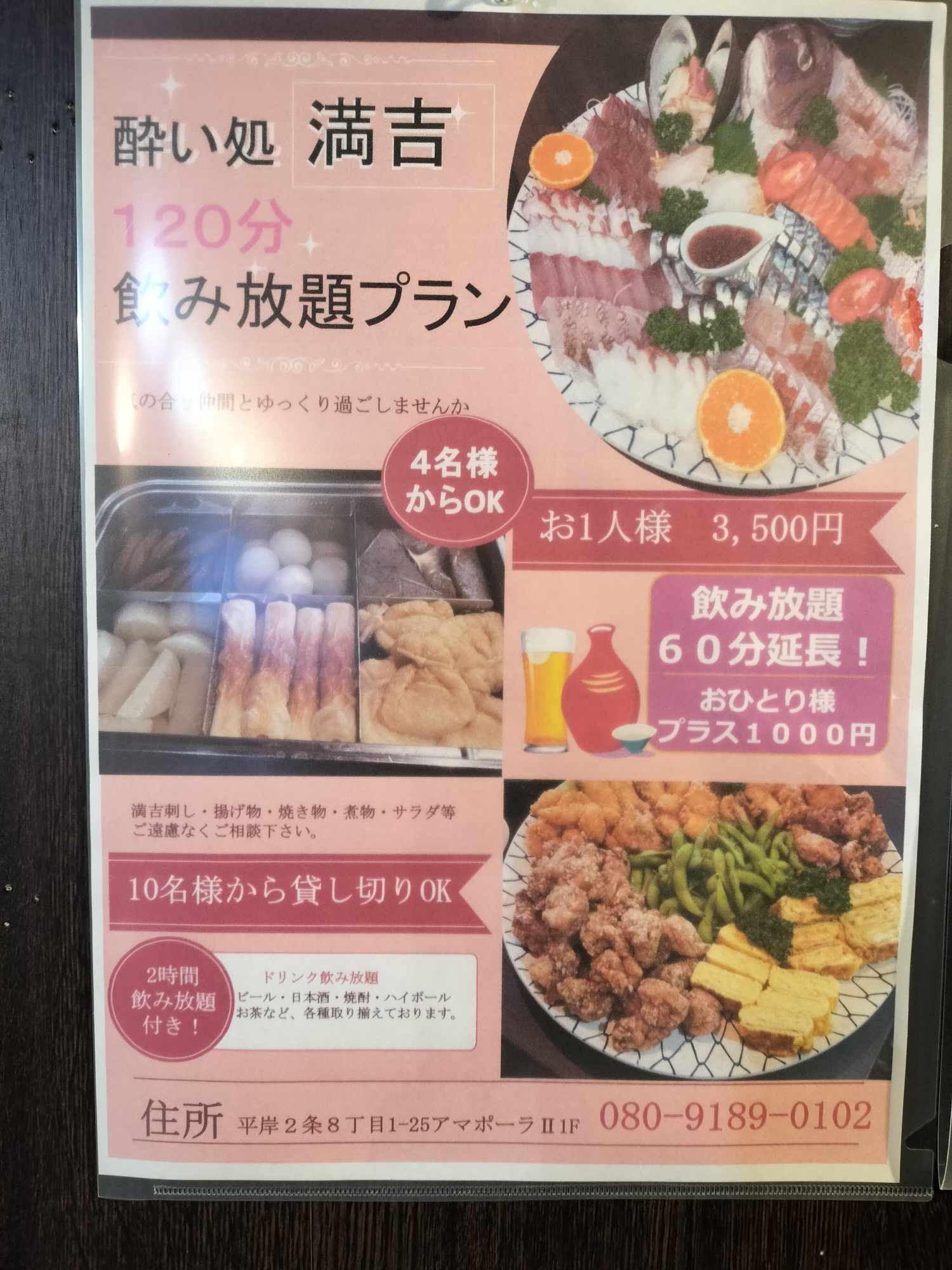 地下鉄 平岸駅から徒歩3分、赤提灯が目印の居酒屋「酔い処 満吉」。